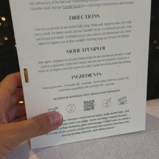 - Massage our Blended oil to your babe's scalp together with our gentle brush, avoiding eyes and mouth.